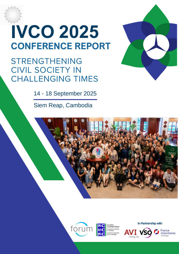 The conference report ‘Strengthening Civil Society in Challenging Times’ captures key themes from the 2025 International Volunteer Cooperation Organisations Conference (IVCO 2025). It reflects the collaborative efforts of the IVCO 2025 Organising Team. IVCO was organised by the Global Volunteering Forum with co-hosts the Cooperation Committee for Cambodia (CCC) and in partnership with Australian Volunteers International (AVI), France Volontaires and VSO Cambodia.